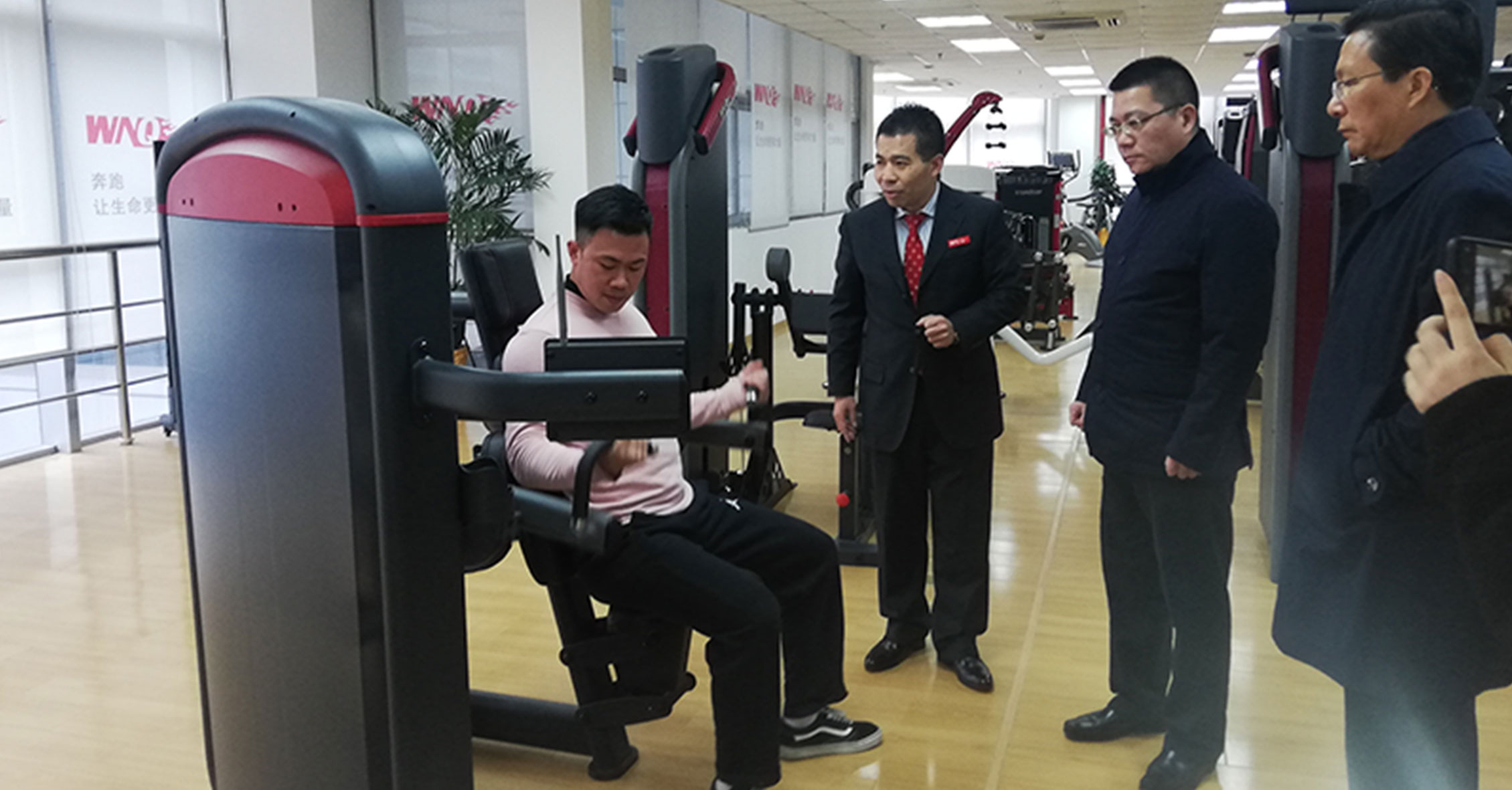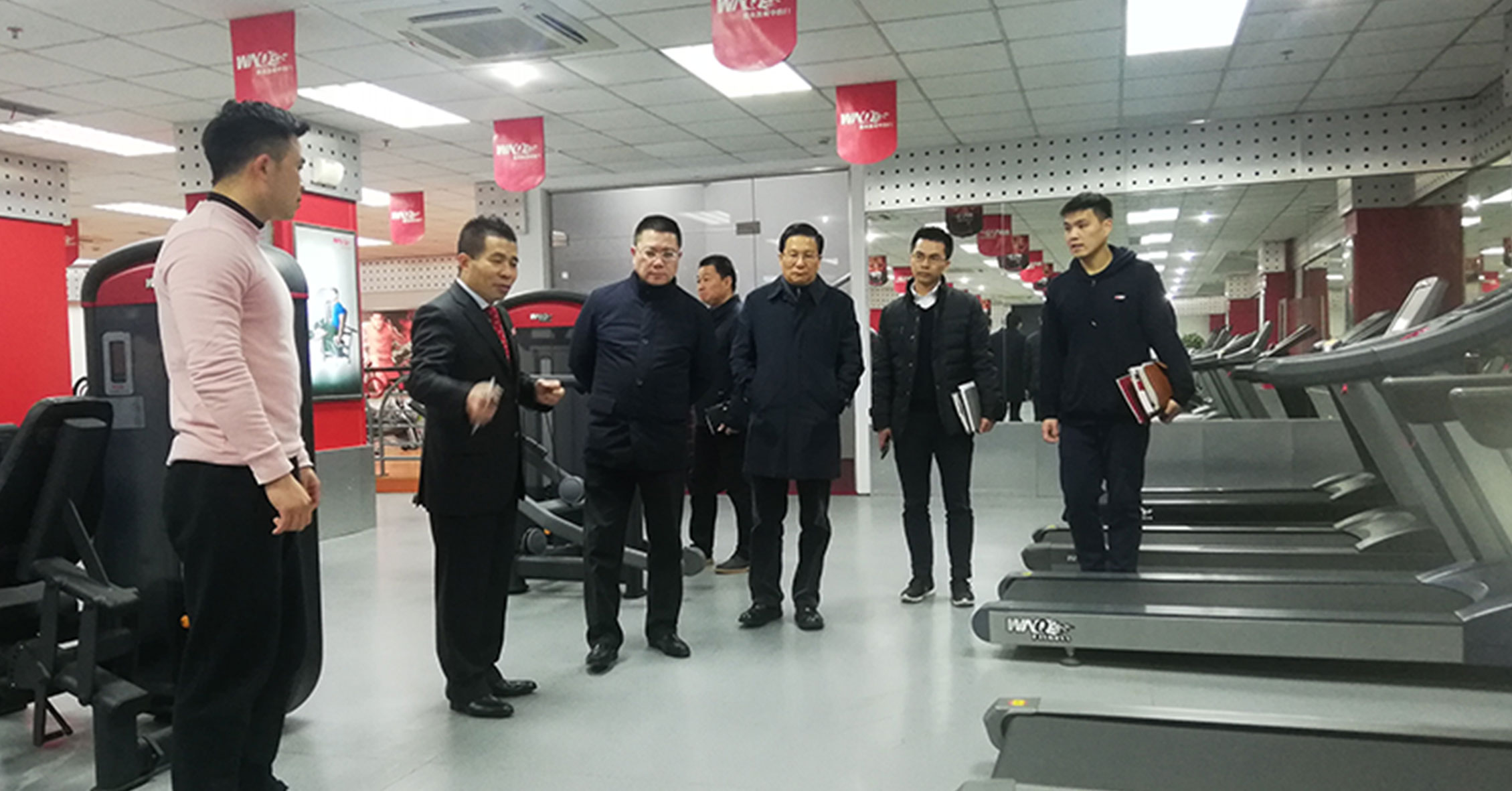 许副局长一行先参观了3522vip浦京集团器材展厅,对我们的企业文化、发展情况、健身器材产品等进行了详细了解,并重点关注了2018年3522vip浦京集团推出的F1-7000美格力量单站系列、W2000变形金刚系列和F4、F6跑步机等新品,3522vip浦京集团的力量单站产品大管径的优质选材、源自美国的外形设计和新品跑步机的智能化等特点深得领导一行的肯定。